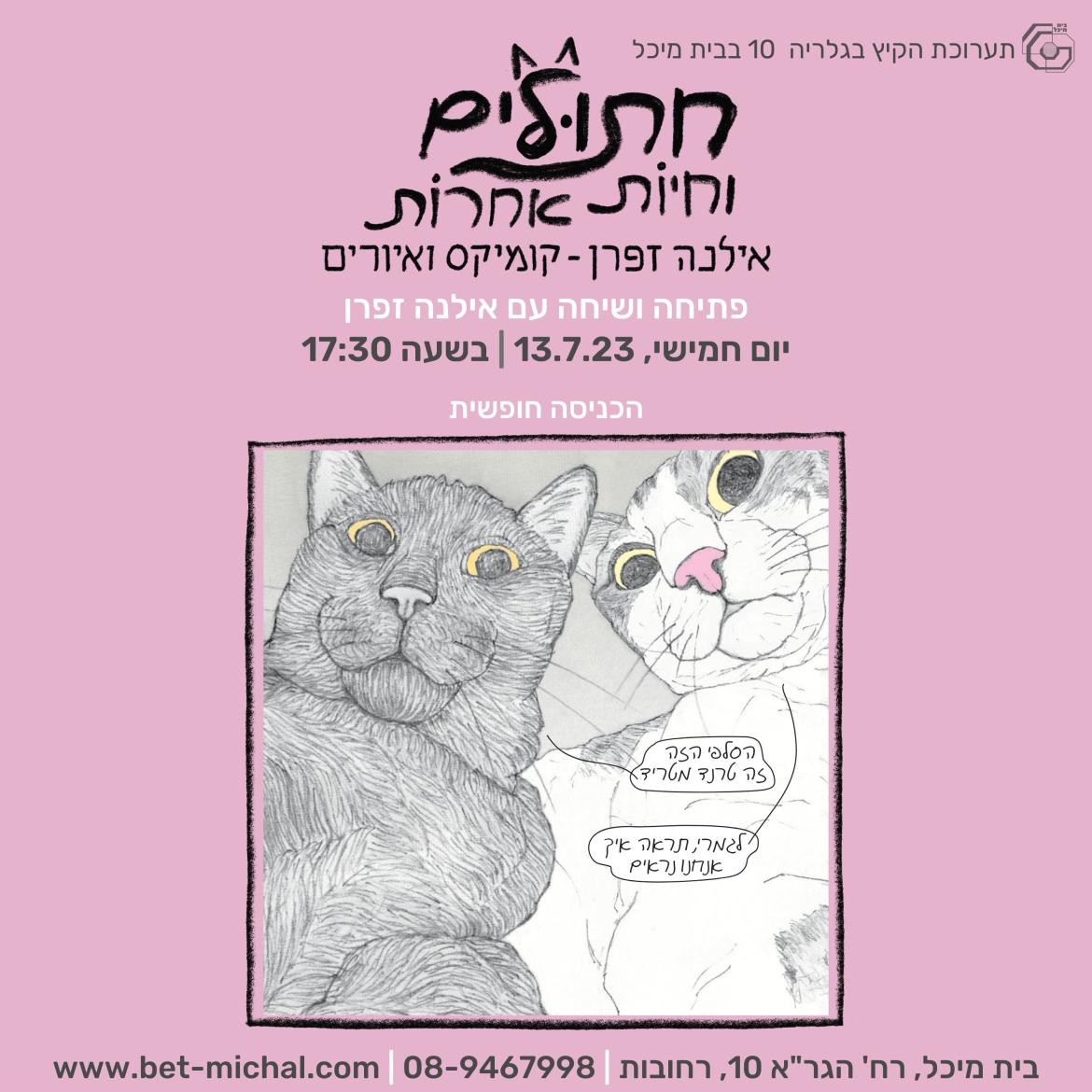 תערוכה חדשה בבית מיכל - קומיקס ואיורים: חתולים וחיות אחרות | אילנה זפרן