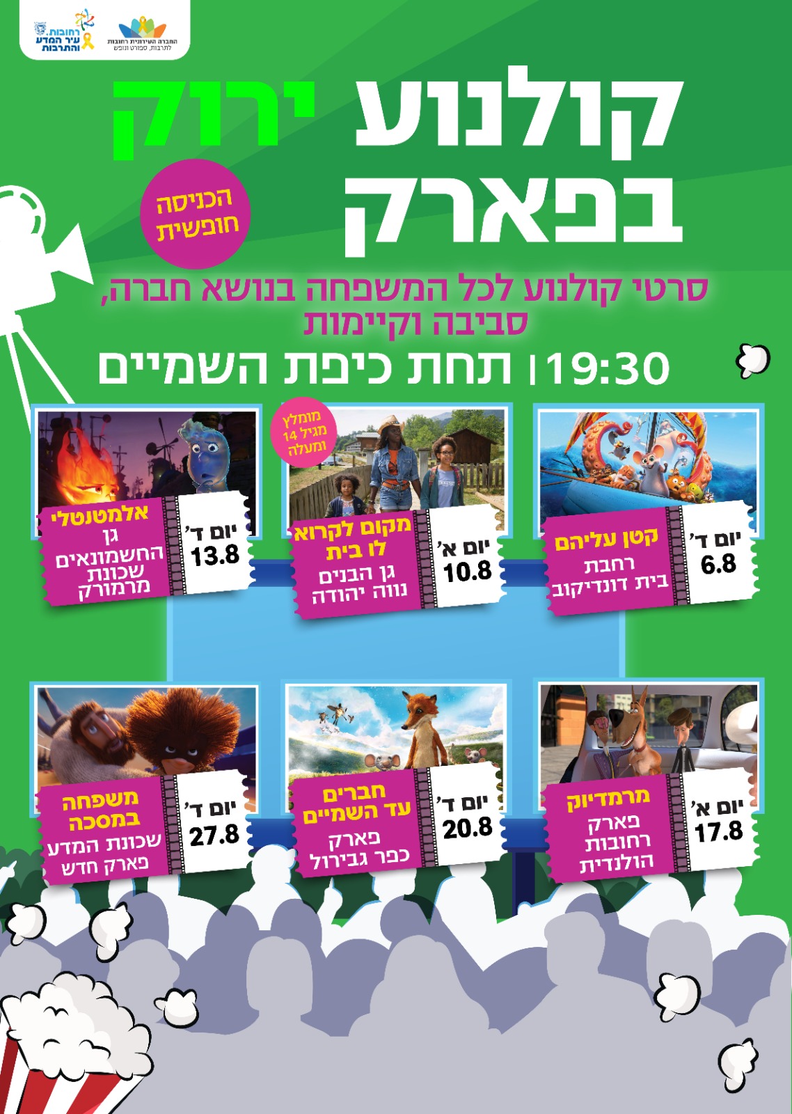 קולנוע ירוק ברחובות: סרטים לכל המשפחה תחת כיפת השמיים – הכניסה חופשית!