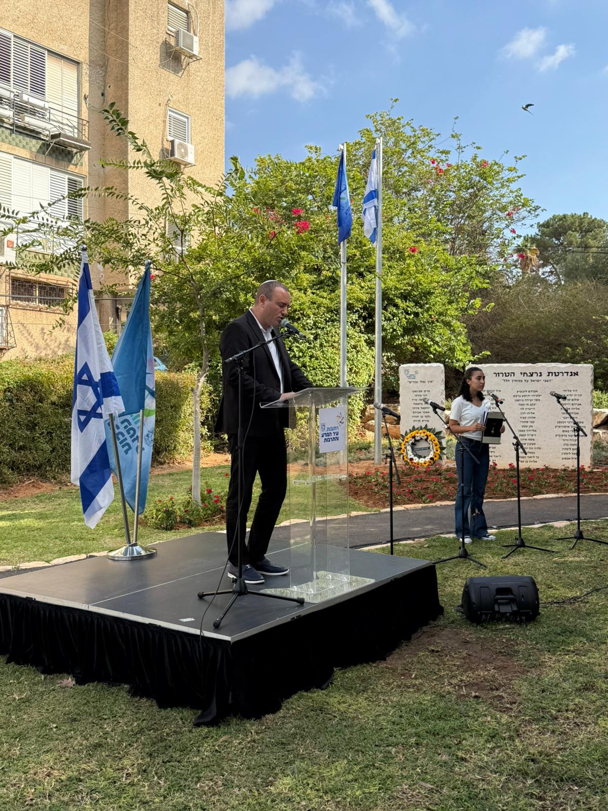 בשם המשפחות השכולות נשא דברים דניאל בר, בנו של דוד בר קפרא ז"ל, החקלאי הרחובותי שנרצח באכזריות בשנת 2015 במושב פדיה, אשר אמר בין היתר:“האנדרטה שאנו חונכים כאן היום איננה רק מקום של זיכרון, היא תמרור מוסרי, חינוכי ולאומי. היא משמיעה את קולם של אלו שנדם ומזכירה לנו, שבצד ההווה והעתיד, יש עבר שמחייב אותנו לזכור. דווקא כעת, כשהמדינה כבר לא מצויה בלב המלחמה אך הכאב עודנו קיים, יש חשיבות כפולה בהקמתה של אנדרטה זו. היא מחברת בין הדורות - בין שמות שנחרתו בזיכרון הלאומי לפני עשורים, לבין אלו שצורפו זה עתה, ואומרת בקול ברור: עם ישראל לא שוכח. עם ישראל זוכר, מכבד ומתחייב להמשיך בבניית העם והארץ ”
