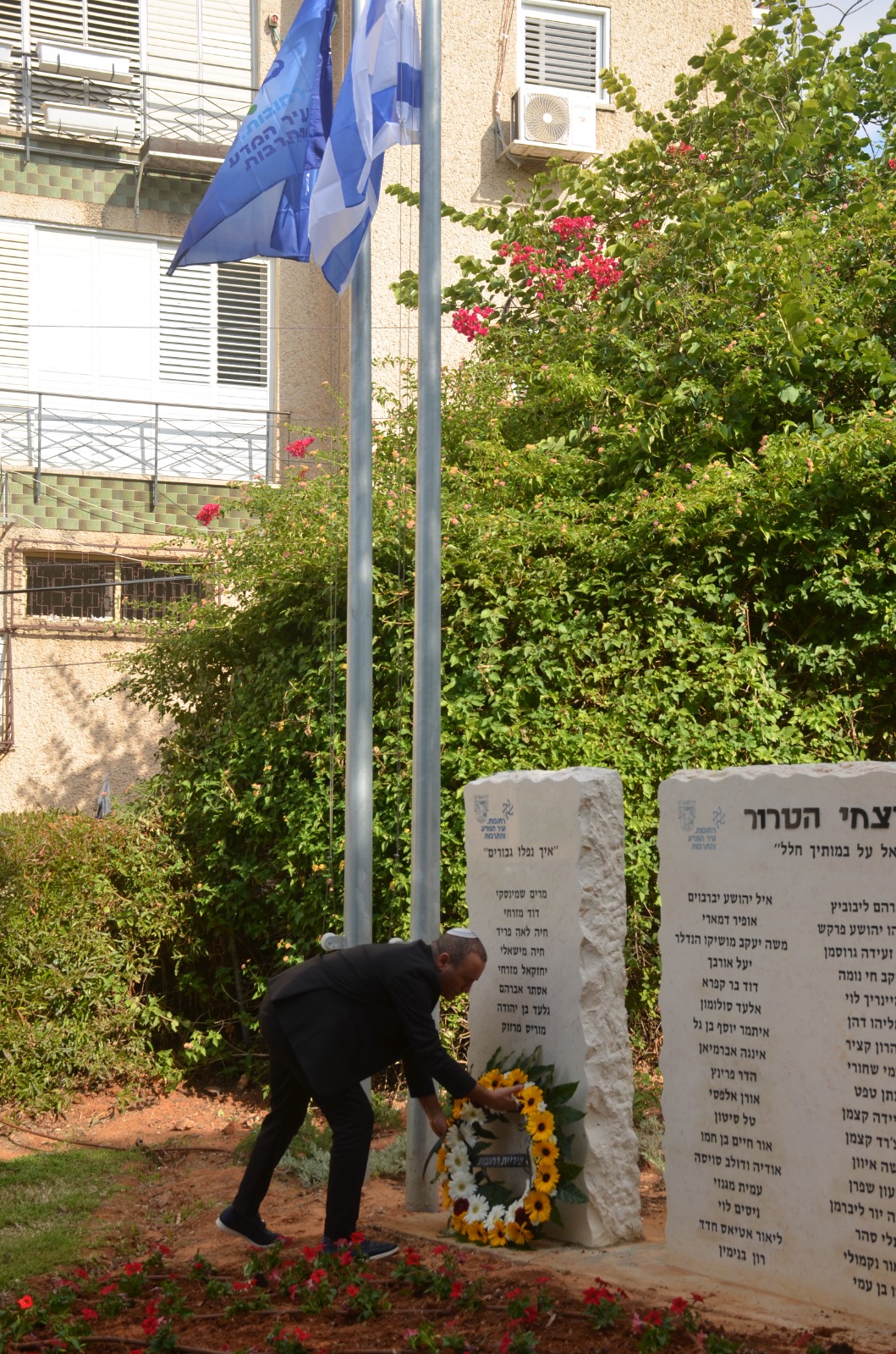 במהלך הטקס נחשפה האנדרטה החדשה, עליה חקוקים שמותיהם של נרצחי הטרור בני העיר, כשלצדה הוצבה אבן נוספת עם שמות נרצחות ונרצחים נוספים, עדות לכאב הגדול ולמספר הרב מדי של קורבנות.