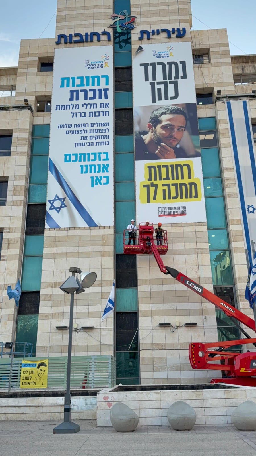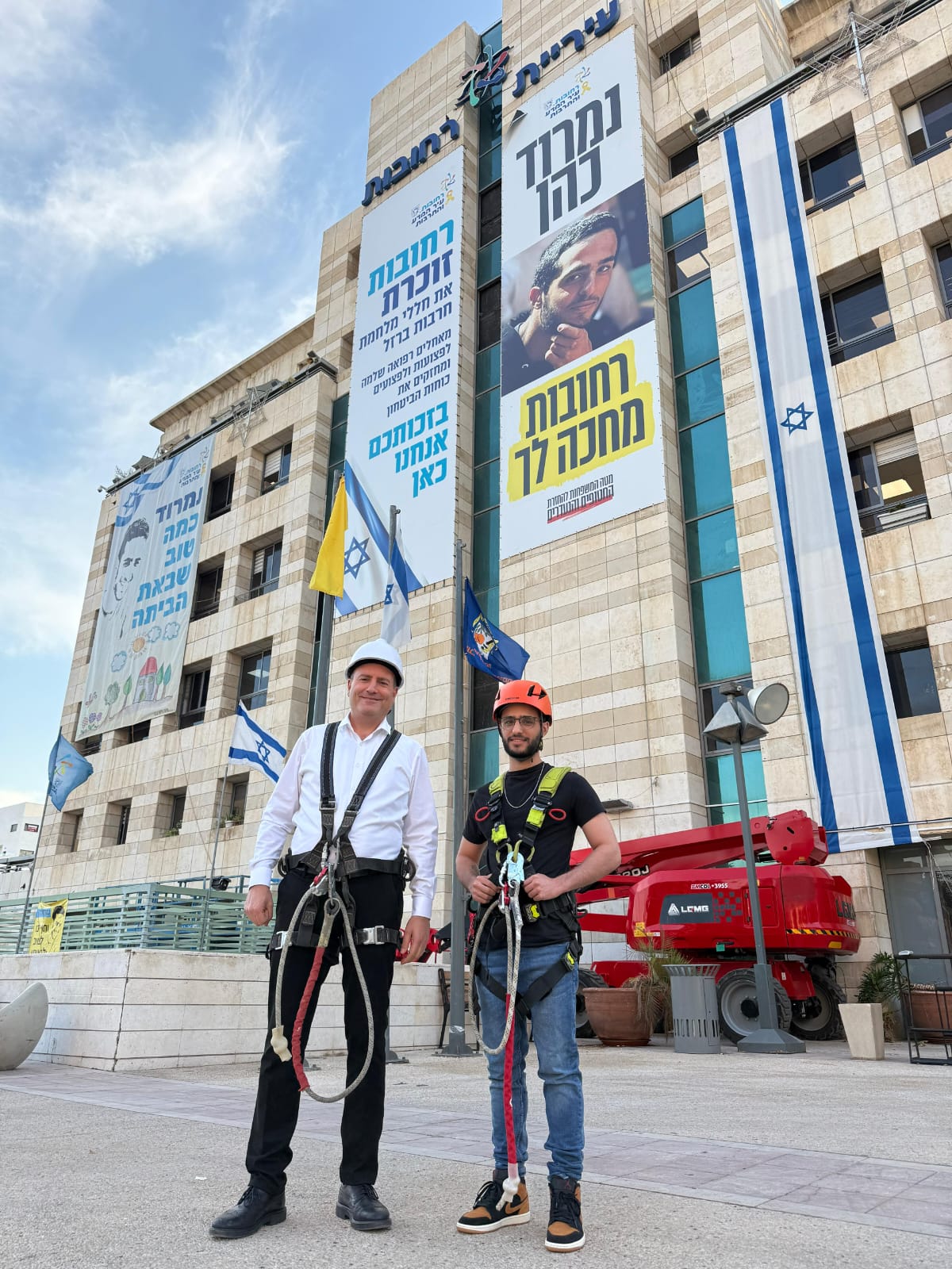 רגע לפני שעלה על המטוס בדרכו להיפגש עם נשיא ארה"ב, הגיע נמרוד כהן לאירוע מרגש במיוחד - הסרת השלט הענק שהותקן לפני זמן רב על בניין העירייה וקרא לחזרתו, יחד עם ראש העיר מתן דיל.